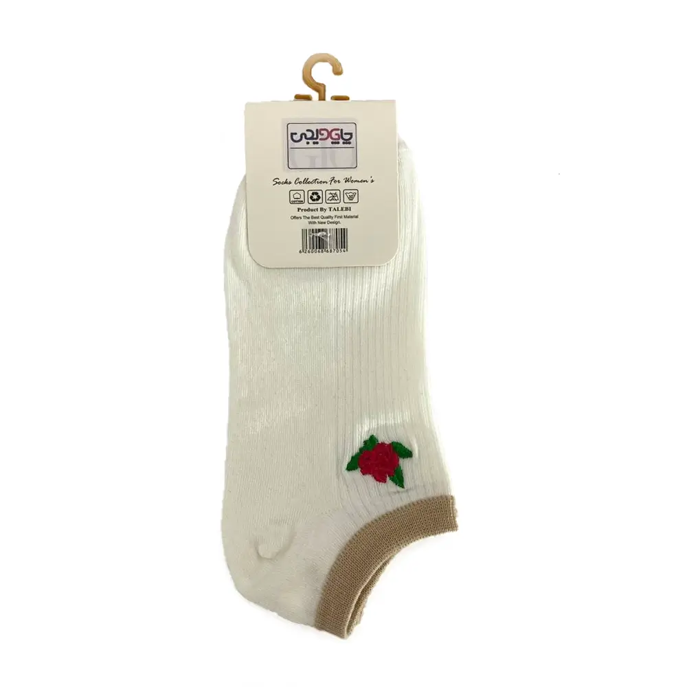 جوراب زنانه گلدوزی سفید طرح گل قرمز